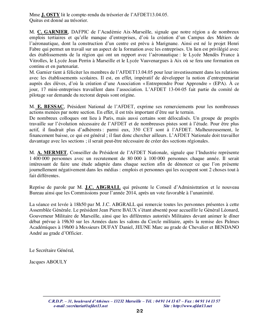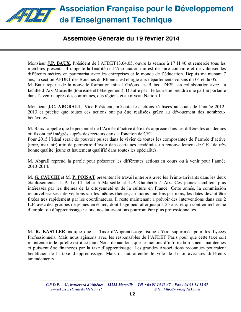 Générale annuelle de l’AFDET13.04.05