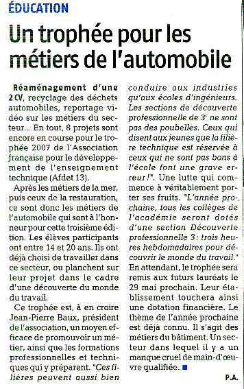 le titre "Les métiers de l'automobile à l'honneur",